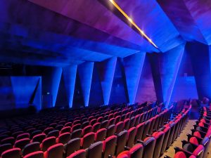 El auditorio del Complejo Andrónico Luksic Abaroa cuenta con iluminación de sala RGBW, que se maneja de manera manual con una superficie de control analógica desde la caseta técnica. Se puede colorear para lograr distintos efectos abarcando desde lo neutro de su coloración natural en madera hasta colores muy intensos.